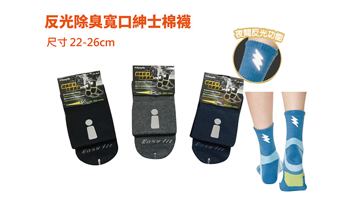 Easyfit反光除臭寬口紳士棉襪 x 3雙 22-26cm